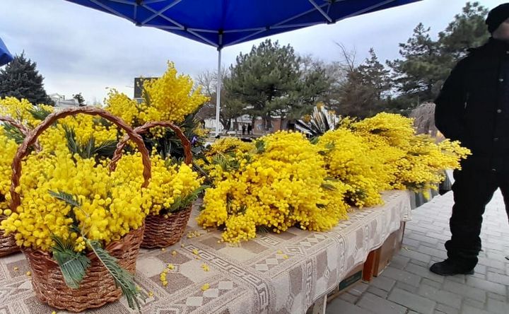 В Азове в канун Международного женского дня цены на цветы продавцы решили не поднимать, ведь спрос на них среди мужчин заметно упал по сравнению с 2022 годом. На ярмарке цветов на Привокзальной площади скромная ветка мимозы стоит 40 рублей, а одинокий тюльпан — 60 рублей, и это самый бюджетный вариант в городе.