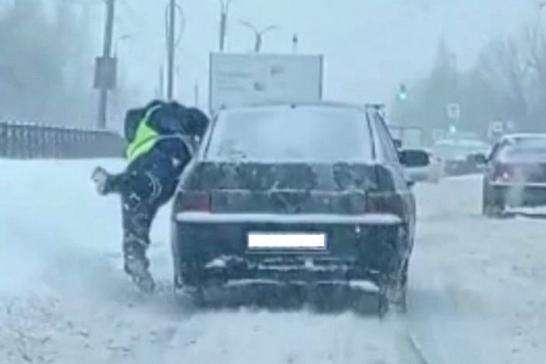 Полицейский чудом удержался за дверь. Фото 62info.ru