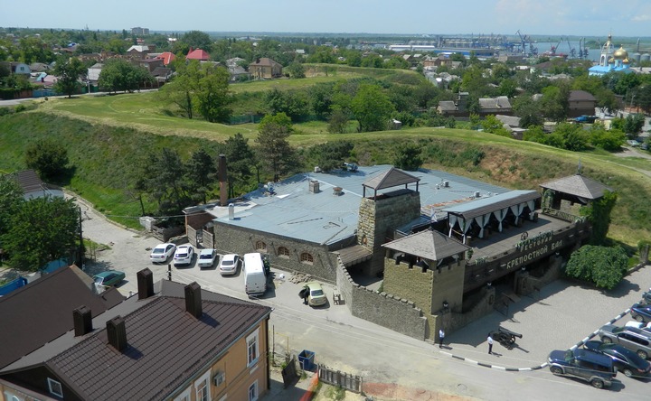 Ресторан–музей «Крепостной вал» на фоне валов Азовской крепости. Фото ruffnews.ru