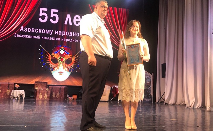 Во время праздничного концерта за большой вклад в развитие культуры Азова и в связи с 55-летием Заслуженного коллектива народного творчества народного театра юного зрителя, благодарственные письма были вручены руководителю и актёрам творческого коллектива.