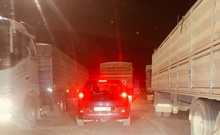 Забитое зерновозами Кагальницкое шоссе. Фото «Азов. События» в «ВК»