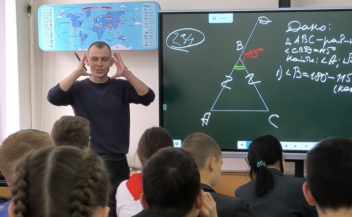 Сергей Шрайнер ведёт урок в школе. Фото с личной страницы педагога «ВКонтакте»