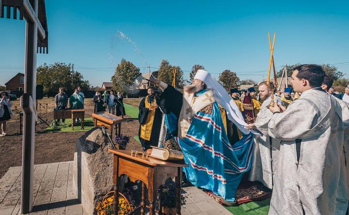 В конце церемонии владыка и глава районной администрации отметили историческую значимость события, ведь это первый храм, который появится в Новоалександровке.