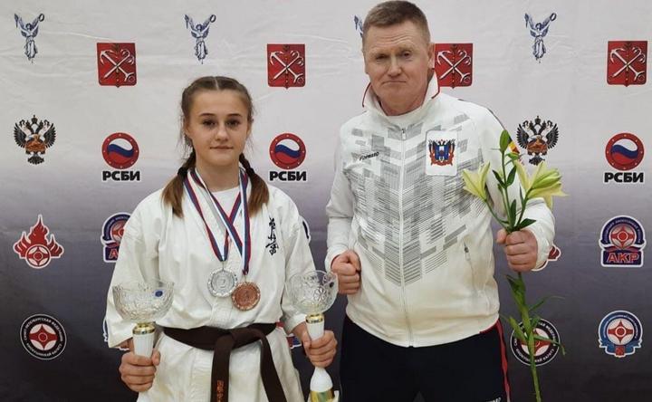 Азовчанка Софья Чимшит получила сразу две медали на прошедших в Санкт–Петербурге Всероссийских соревнованиях по киокусинкай, сообщили в администрации Азова.