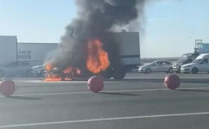 Горящий на трассе М–4 автозак. Скрин с видео tеlegram–канала Don Mash