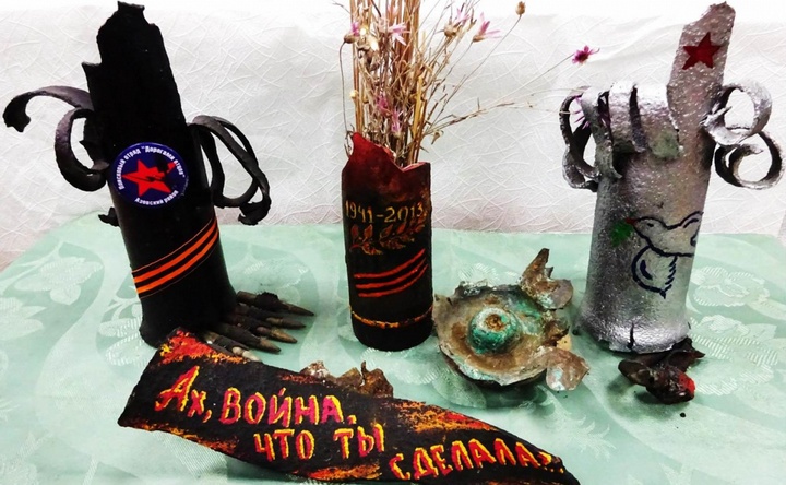 Осколки мин и снарядов, найденные поисковиками отряда «Дорогами отцов» из Пешковской школы пригодились для создания 33 арт–композиций. Выставка «Железо войны — во славу Мира», посвящённая Дню Победы, 20 апреля открылась в выставочном зале «Меценат» Азовского музея–заповедника.