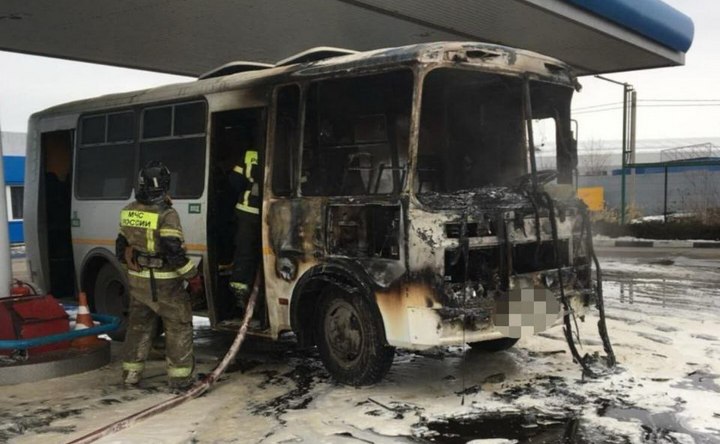Автобус сгорел на АЗС. Фото пресс–службы ГУ МЧС России по Ростовской области