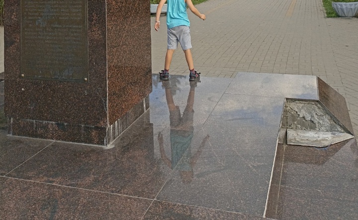 Как отметили постоянные отдыхающие в сквере, такое со стелой происходит не в первый раз. Раньше на задней стенке памятника не было большой плиты. «Все видели, что клея было очень мало», — отметил один из горожан.