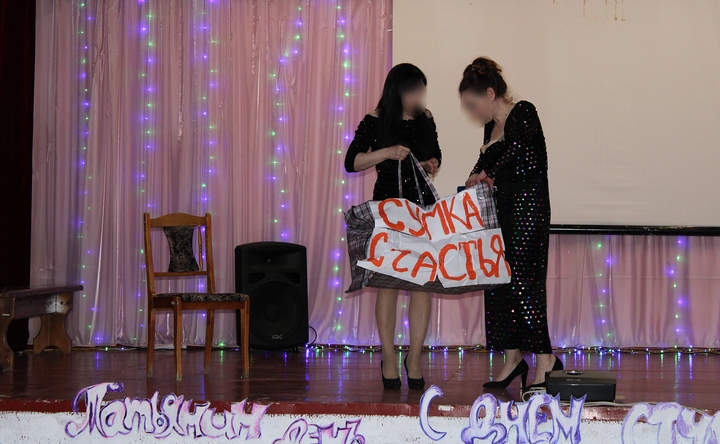 Со сцены прозвучали поздравления для всех Татьян. Женщины читали стихи, пели песни. Не обошлось и без шуток — местные артистки показали зрителям юмористические миниатюры, которые окунули всех в студенческие годы.
