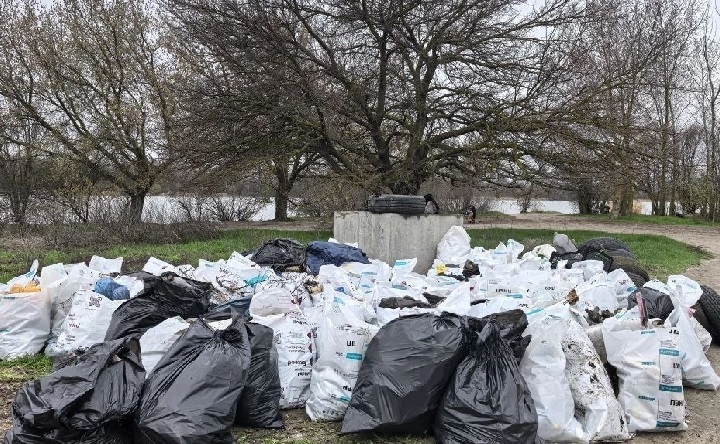 В ходе уборки территории машинного пляжа участники уборки собрали больше 15 кубометров мусора, оставленного отдыхающими, и большое количество автопокрышек.