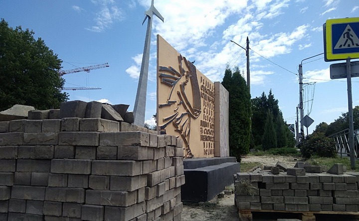 Площадь около стелы уже очищена от старой плитки. Фото ruffnews.ru