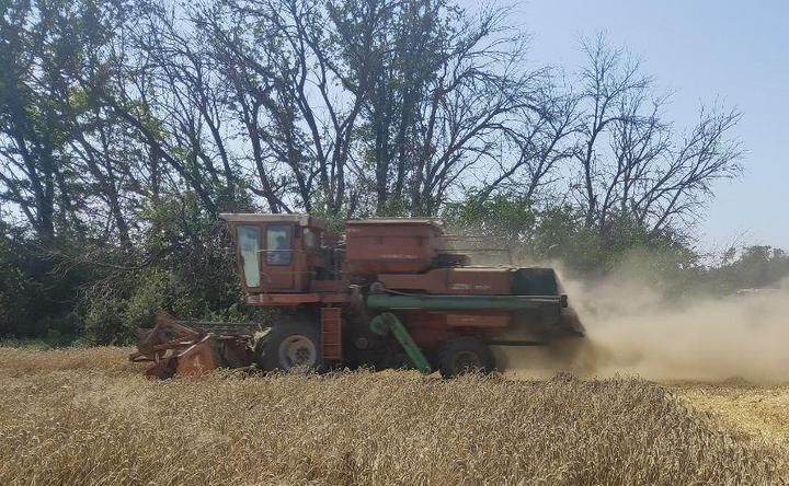Уборочная страда на полях Азовского района. Фото t.me/azovskiyrayon