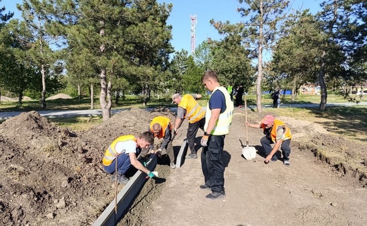 В сквере уже начались работы. Фото пресс–службы администрации Азовского района