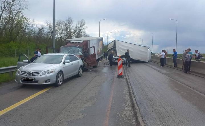 Водитель грузовой «Газели» не выдержал безопасную дистанцию и врезался в грузовик Iveco. После этого его автомобиль отбросило на «ВАЗ–2107», затем «семёрка» въехала в Toyota Camry, которая, в свою очередь, столкнулась с Kia Ceed. В результате аварии грузовик завалился на бок прямо на проезжей части.