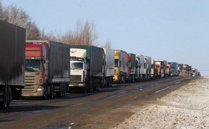 Вереница большегрузов к терминалам. Фото из архива ruffnews.ru
