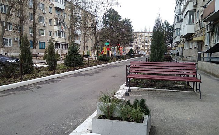 К слову сказать, красивому двору, современной детской площадкой и парковкой местные жители обязаны только себе. В 2018 году они решились поучаствовать в нацпроекте и не прогадали. С тех пор их двор на слуху во всём Азове и зачастую погулять на уютной площадке приезжают мамы с детьми из других уголков города.