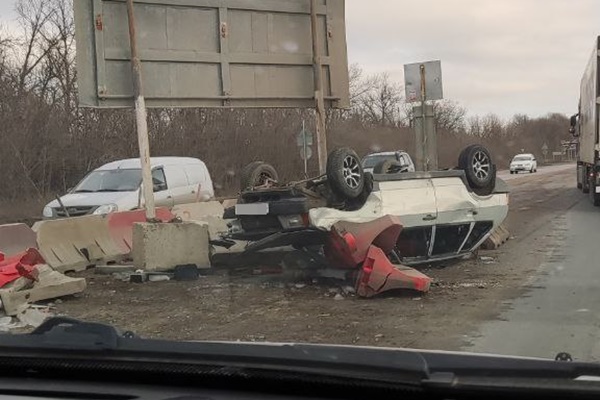 24 января на въезде в Новочеркасск автомобиль ВАЗ-2109, совершив кувырок, на крыше врезался в бетонные блоки на разделительной полосе.