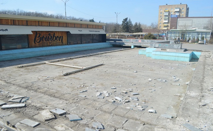 Подрядчик, ООО «Роствалк», уже приступил к демонтажу старых конструкций детской площадки, снял облицовку фонтана. Напомним, именно эта фирма занималась благоустройством парка в микрорайоне Соцгород, а также Троицкой площади.