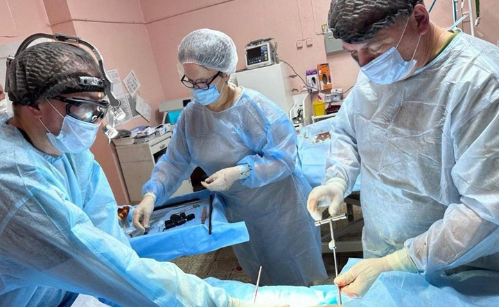 Борис Гуркин с коллегами проводит операцию. Фото пресс службы Ростовского регионального отделения «Единой России»