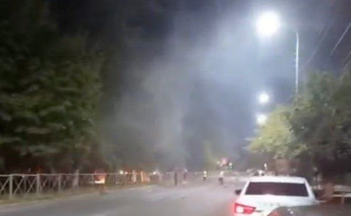 Возгорание на месте падения осколков одного из БПЛА. Фото из соцсети