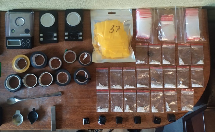 Отрабатывая оперативную информацию, полицейские остановили немолодого мужчину. Во время личного досмотра в карманах его одежды обнаружили и изъяли 26 полимерных свертков, внутри которых находилось белое кристаллическое вещество. При обыске дома у подозреваемого были найдены и изъяты фасовочный материал, весы, изолента, перчатки и ещё один пластиковый пакет с замком фиксатором с порошкообразным веществом белого цвета внутри.
