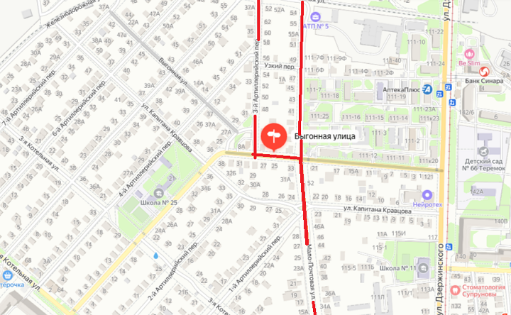 Ранее движение транспорта по улице Выгонной от 3-го Артиллерийского переулка до улицы Мало-Почтовой, а также по этому переулку от Выгонной до улицы Железнодорожной перекрывали с осени прошлого года до конца мая.
