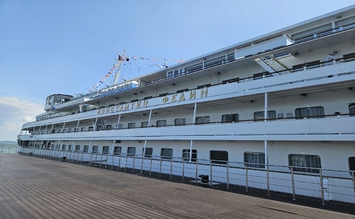 Теплоход у плавучего причала Таганрога. Фото t.me/Fateev_A_E