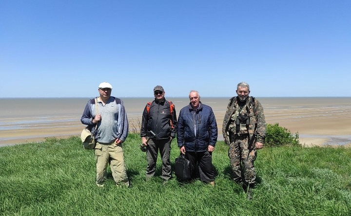 Учёные Павел Панин, Вадим Титов, Александр Колесник и Игорь Гордин на берегу Таганрогского залива. Фото пресс-службы ЮНЦ РАН