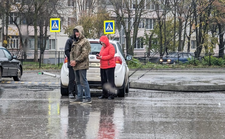 Штормовой ветер порывами до 22 м/сек повалил опору электропередач на пересечении улицы Сызранова и Мариупольского шоссе. Во время падения столб повредил бампер проезжавшего в тот момент по дороге автомобиля и перегородил проезжую часть. Провода находились под напряжением. Образовалась автомобильная пробка.