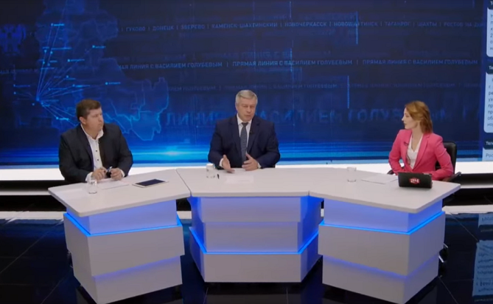 Василий Голубев отвечает на вопросы жителей региона в эфире прямой линии. Скриншот трансляции donland.ru