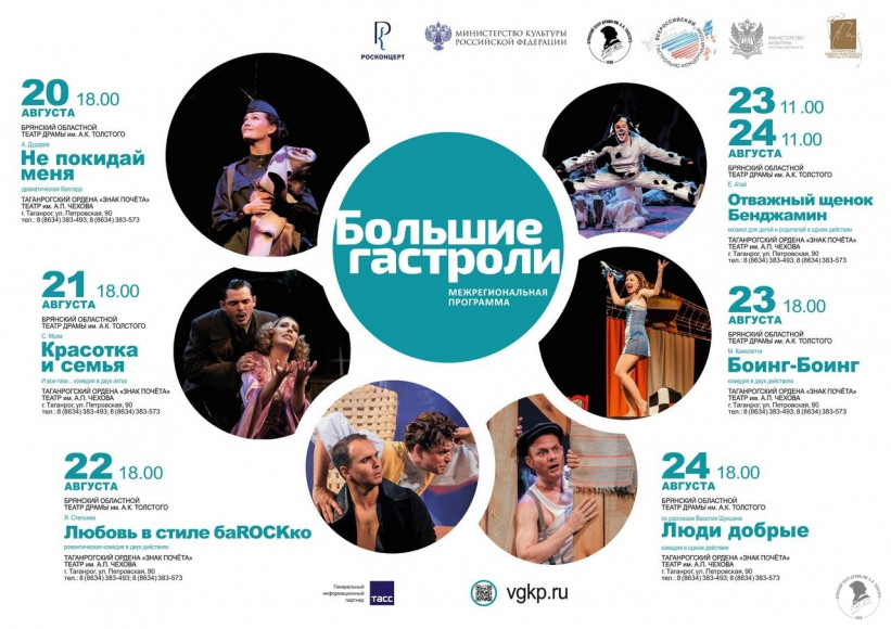 С 20 по 24 августа на сцене Таганрогского театра имени А.П. Чехова Брянский театр покажет зрителям шесть ярких постановок.