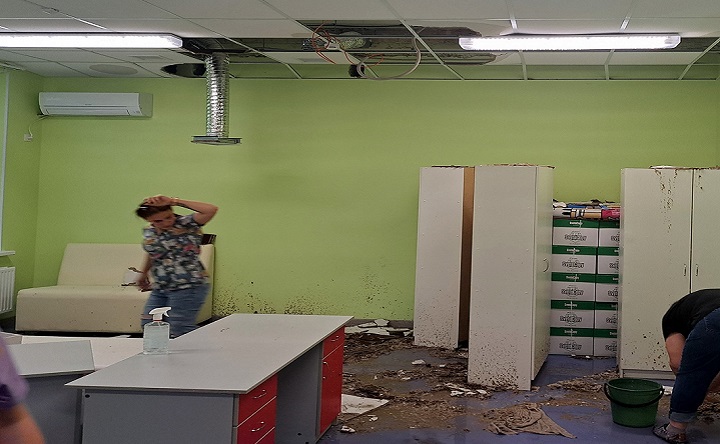 В детской поликлинике на улице Глушко, 12 обрушился потолок после залития с верхнего этажа. Произошло это 30 мая, свидетелем происшествия стал городской блогер Олег Фетисов, на своей страничке в соцсети он опубликовал фото и описал произошедшее: «В поликлинике на Глушко, собирались открыть кабинет ЛФК (лечебно-физкультурный). Из областного фонда было выделено 400 тысяч рублей на дооснащение необходимым оборудованием. Каково же было сегодня разочарование медперсонала, когда они увидели удручающую картину: потолок обрушился, а мебель, документация и инвентарь буквально плавали после потопа со второго этажа».