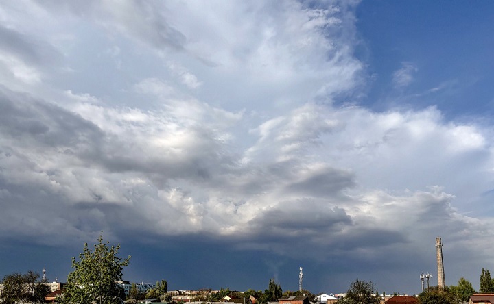 По прогнозу синоптиков, к массиву фронтальной облачности, который по-прежнему клубится над Таганрогом, присоединится арктический фронт. Набегающие тучи будут перекрывать приток солнечного тепла и могут пролиться дождём. Столбики термометров поползут вниз, а ветер усилится до 14 м/сек.