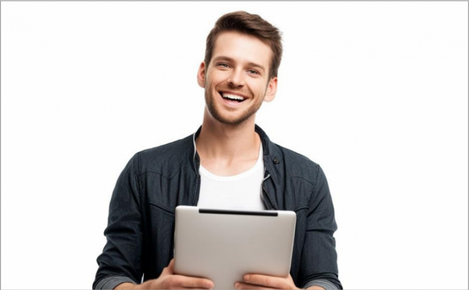 Мужчина с планшетом. Изображение сгенерировано нейросетью Kandinsky