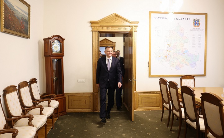 Юрий Слюсарь входит в кабинет главы региона. Фото пресс-службы губернатора Ростовской области