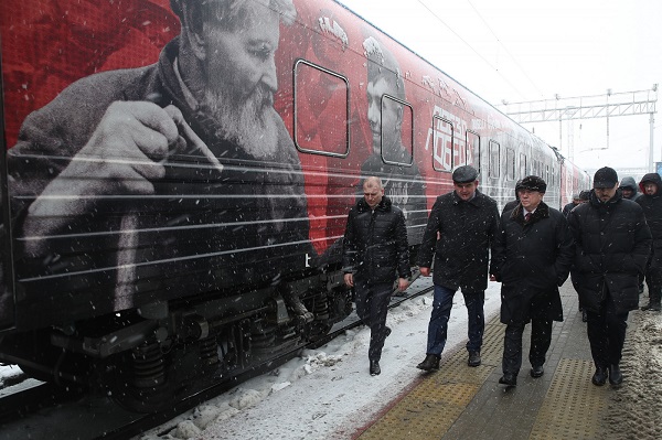 Василий Голубев идёт вдоль «Поезда Победы». Фото donland.ru