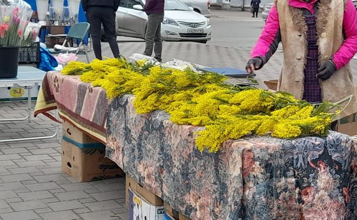 В Азове в канун Международного женского дня цены на цветы продавцы решили не поднимать, ведь спрос на них среди мужчин заметно упал по сравнению с 2022 годом. На ярмарке цветов на Привокзальной площади скромная ветка мимозы стоит 40 рублей, а одинокий тюльпан — 60 рублей, и это самый бюджетный вариант в городе.