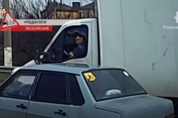 В Азове водитель фургона пытался выехать из пробки при помощи предмета, похожего на пистолет. Инцидент зафиксировал горожанин Олег на Пешковском переезде. Видео с места показал телеканал «Рен ТВ» в программе «#Педагоги».