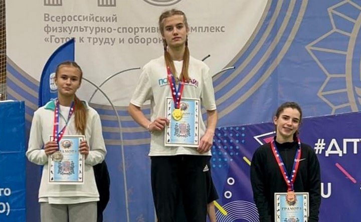 Ангелина Колядинская (в центре) — победитель по прыжкам в высоту. Фото @azovadmin