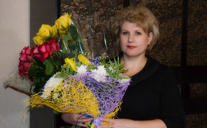 Людмила Анишко с букетом. Фото со страницы в «Одноклассниках»
