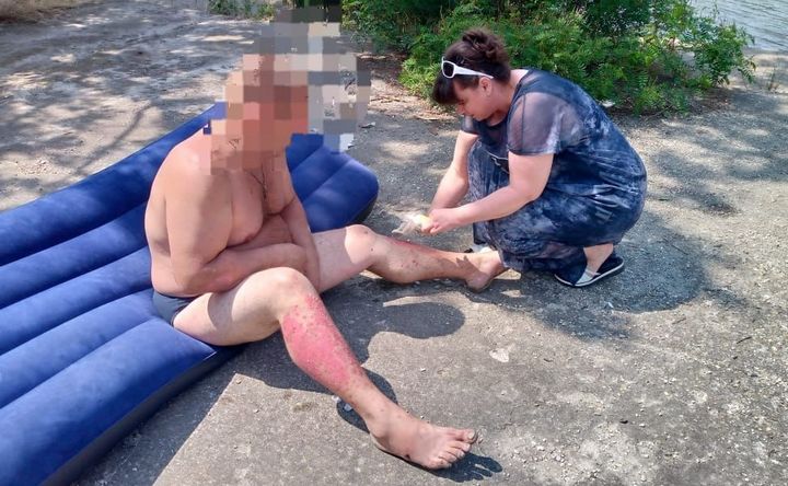 На берегу пострадавших встретила родственница, а медсестра спасательного подразделения обработала ссадины. От медицинской помощи гости Азова отказались.