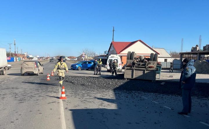 Перевернувшийся в Кулешовке грузовик. Фото ОГИБДД МО МВД России «Азовский»