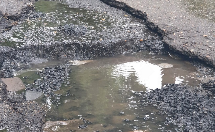 Дождь смыл асфальт на улице Калинина. Фото Руслана Сердюкова