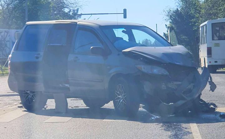 На въезде в Азове 3 мая Mazda протаранил Lexus. Автомобиль премиум–класса, по словам читателей портала «Ёрш. Азов», выворачивал на трассу с отстойника автобусов на конечной остановке маршрута №2, и ему в бок врезался минивен.