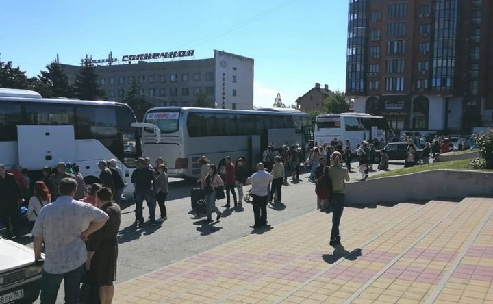 Родители провожают детей в детский лагерь на море. Фото t.me/azovadmin