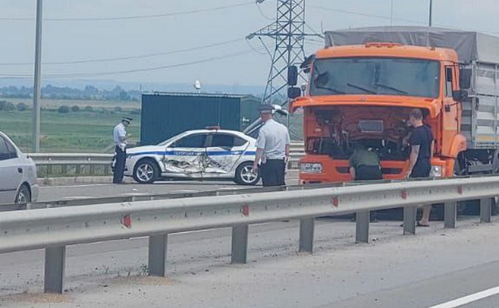 На объездной трассе под Азовом 17 июня столкнулись большегруз и полицейская Skoda Octavia. Об этом сообщили в отделе пропаганды областного управления ГИБДД.
