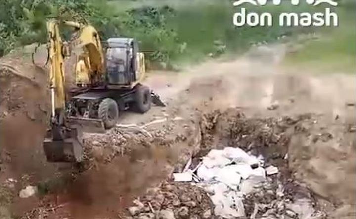 Экскаватор, закапывающий кости животных и рыбу. Скрин с видео ТГ DonMash