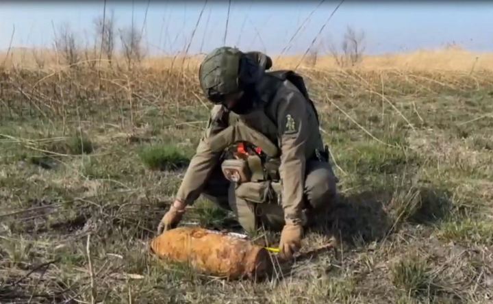 Фугас перед обезвреживанием. Скриншот с видео МЧС России