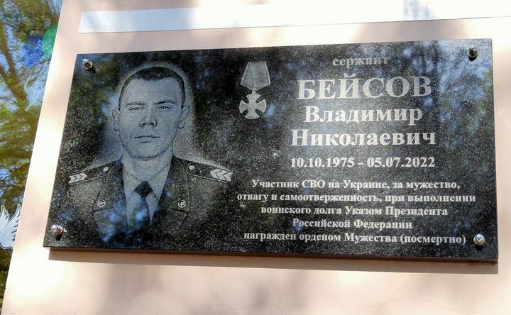 В селе Кулешовка на фасаде школы №17 открыли мемориальную доску в память о Владимире Бейсове, который погиб в ходе специальной военной операции. Об этом сообщили 5 мая в администрации Азовского района.