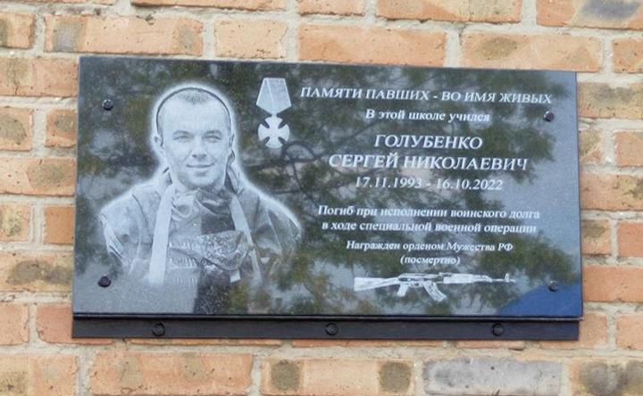 Памятная доска Сергею Голубенко. Фото t.me/azovskiyrayon